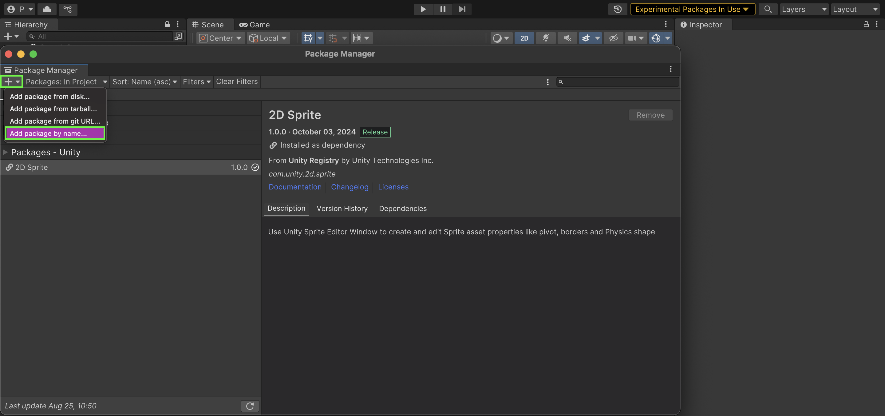 1. Open the add ➕ menu from the toolbar and select Add package by name…